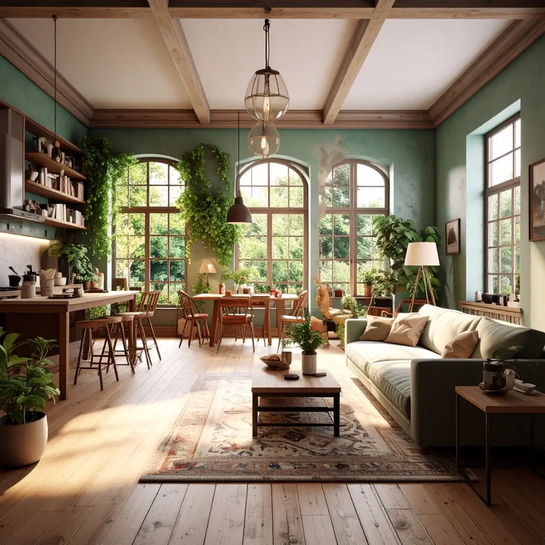 Open spaces, raw finishes, industrial lighting